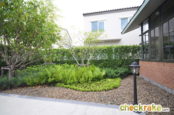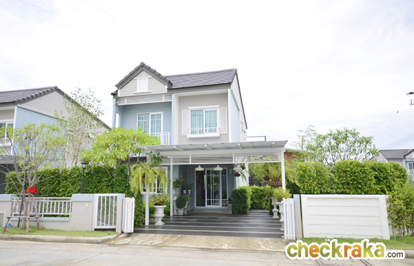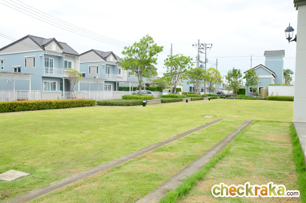 - แบบบ้านและวัสดุ - แบบบ้านภายในโครงการมีความน่าสนใจ เนื่องจากเป็นบ้านเดี่ยว มีพื้นที่บ้านค่อนข้างมาก ตัวฟังก์ชั่นบ้านสามารถรองรับสมาชิกในครอบครัวได้หลายคน พื้นที่ด้านข้างบ้านบางแปลงมีให้กว้างมากพอที่จะสร้างเรือนพักผ่อน หรือจัดสวนส่วนตัวได้เลย จุดเด่นหลักๆ คือดีไซน์ตัวบ้านสไตล์โมเดิร์น โคโลเนียล ใช้สีพาสเทล หวานๆ สบายตา ทำให้ดูน่ารัก น่าอยู่ วัสดุภายในบ้าน เช่น สุขภัณฑ์ใช้ของ American Standard พื้นชั้นล่างเป็นพอสเลน 60x60 ซ.ม. พื้นชั้นบนเป็นลามิเนต บานประตูห้องเป็นไม้ HDF ประตูห้องน้ำเป็นไวนิล กรอบประตู หน้าต่างเป็น UPVC ของ Winsor ทั้งหมด และกระจกเขียวตัดแสงทั้งหลัง โดยรวมแล้ววัสดุและเกรดของวัสดุที่จัดมาให้ค่อนข้างดีค่ะ