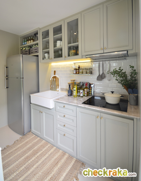 กลับเข้ามาดูที่ครัวกันค่ะ พื้นที่ส่วนนี้ Built in เคาน์เตอร์พร้อมตู้เก็บของได้เลย
