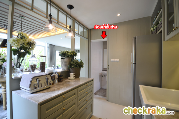 ประตูห้องน้ำชั้นล่างอยู่ตรงครัวนี่เองค่ะ