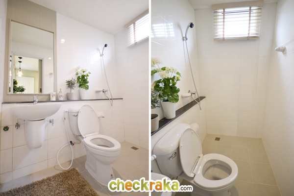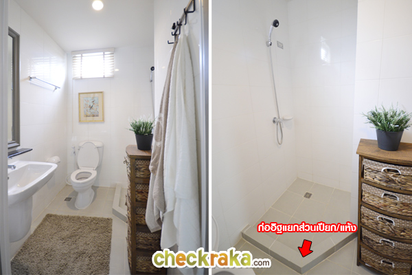 ห้องน้ำภายในห้องมีสุขภัณฑ์ให้ครบของ American Standard พร้อมแยกส่วนเปียก/แห้งให้ด้วยค่ะ