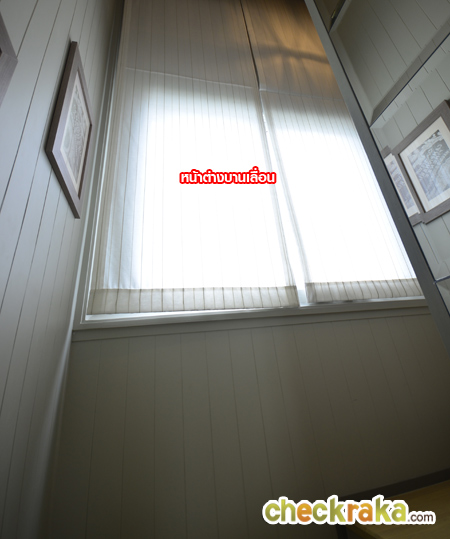ตรงชานพักบันไดมีหน้าต่างบานเลื่อนให้