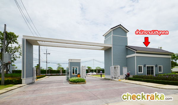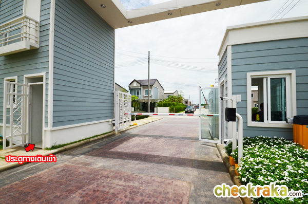 ทางเข้า-ออกโครงการมีซุ้มประตู รปภ. ไม้กั้นกระดก CCTV บริเวณที่สแกนคีย์การ์ดเข้า-ออกโครงการ