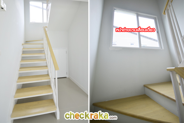 ตรงบันไดมีหน้าต่างบานเลื่อนเปิดรับอากาศจากภายนอกได้ และตัวหน้าต่างยังทำให้แสงธรรมชาติเข้ามา