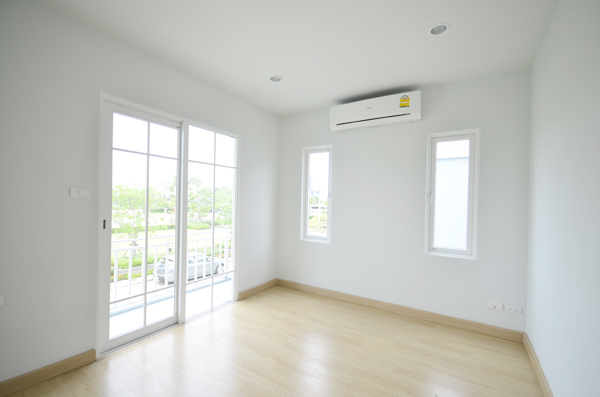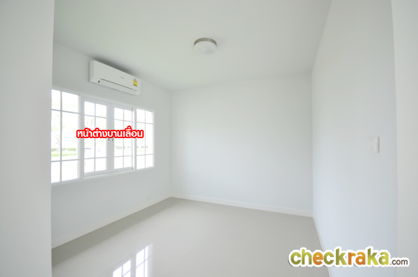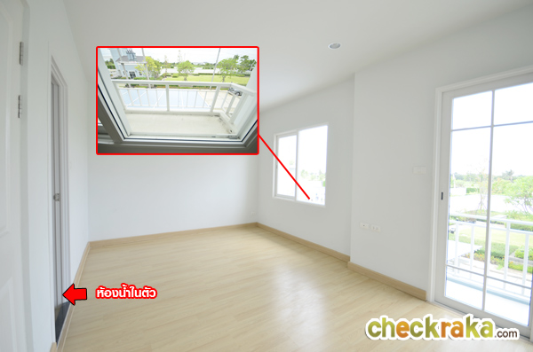 Master Bedroom เป็นห้องเปล่า โล่งๆ มีประตูบานเลื่อนขนาดใหญ่ และมีบานกระทุ้งด้านข้างให้ 2 บาน