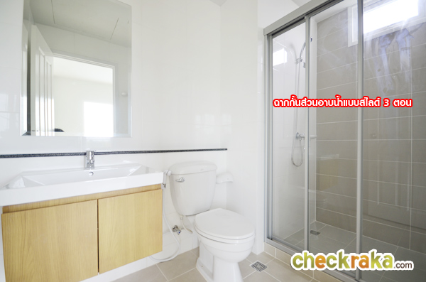 ห้องน้ำใน Master Bedroom ใช้สุขภัณฑ์ของ American Standard แยกส่วนเปียก/แห้งให้ด้วยฉากกั้นส่วนอาบน้ำ