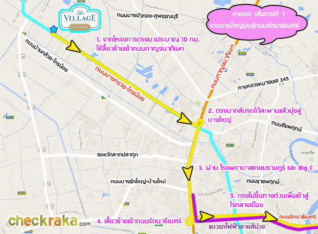 ขาออกโครงการ เส้นทางที่ 1 ผ่านบางใหญ่แล้วออกถนนรัตนาธิเบศร์