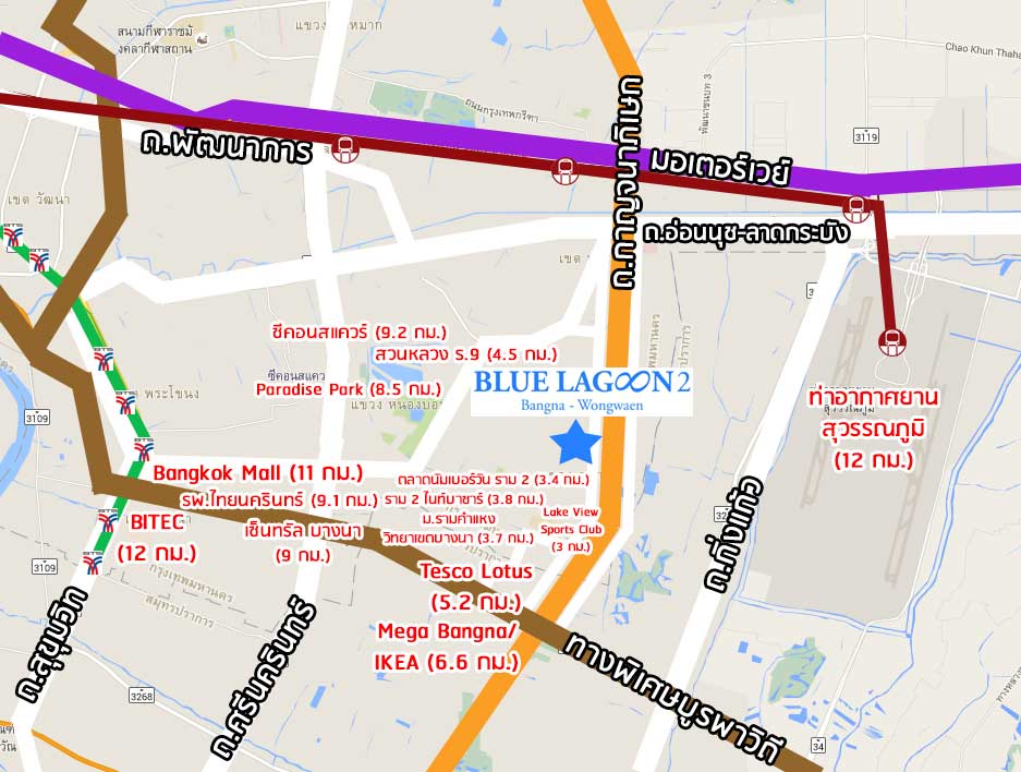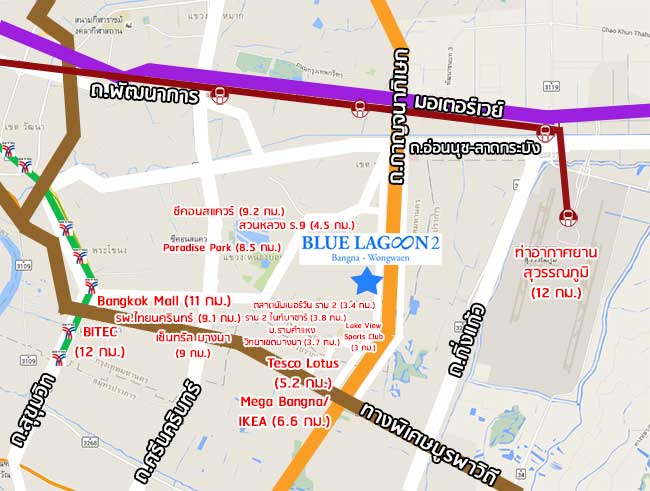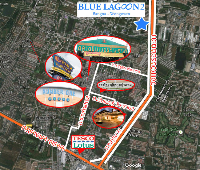 แผนที่ตั้งโครงการ บลูลากูน 2 บางนา-วงแหวน (คลิกดูรูปขยาย)