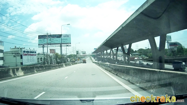 จากนั้นจะเริ่มเห็นป้ายบอกทางเข้าถนนกาญจนาภิเษก (วงแหวนรอบนอกฝั่งตะวันออก) แสดงว่าเราใกล้ถึงแล้วค่ะ