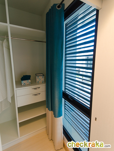 ตรงทางเดินเข้าห้องน้ำสามารถบิวท์อิน ตู้เสื้อผ้าขนาดเล็ก และตรงมุมนี้เองก็ยังมีหน้าต่างบานกระทุ้งสำหรับเปิด