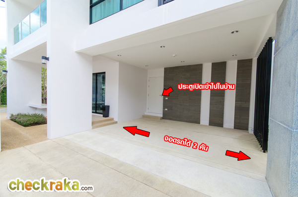 กลับเข้ามาด้านใน ข้างบันไดทางขึ้นชั้น 2 มีประตูเปิดออกไปลานจอดรถโดยไม่ต้องผ่านส่วนรับแขก