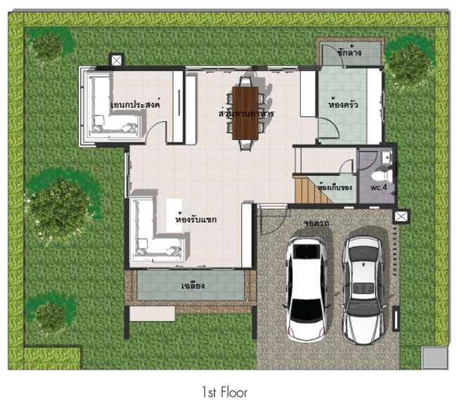 1. แบบบ้าน Blue Turqouise - บ้านเดี่ยว 2 ชั้น ขนาดที่ดิน 51-62 ตร.ว. ขนาดพื้นที่ใช้สอย 188 ตร.ม. 3 ห้องนอน 3 ห้องน้ำ มีพื้นที่รับแขกและรับประทานอาหาร ห้องครัว ที่จอดรถ 2 คัน