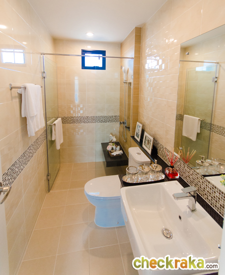 ห้องน้ำภายใน Master Bedroom ให้สุขภัณฑ์มาครบตามที่เห็นนี้เลยค่ะ ห้องนี้ให้กระจก temper