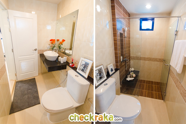 ภายในส่วนอาบน้ำ จะทำที่นั่งอาบน้ำมาให้ หรือจะใช้วางของใช้ภายในห้องน้ำก็ได้