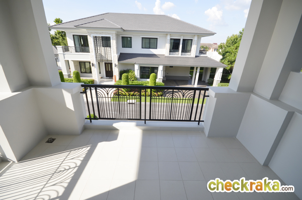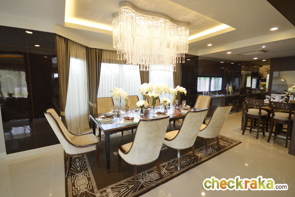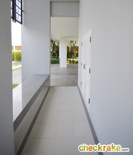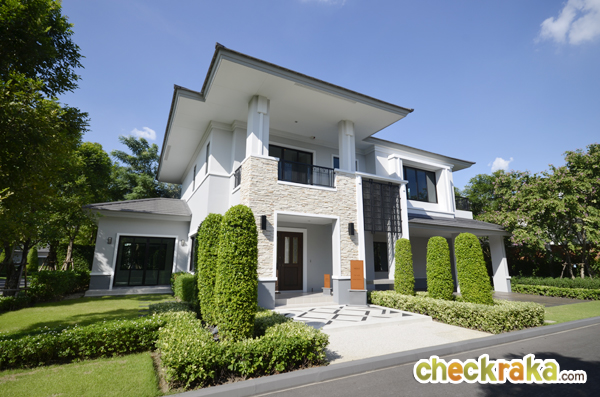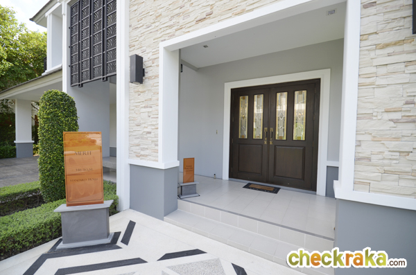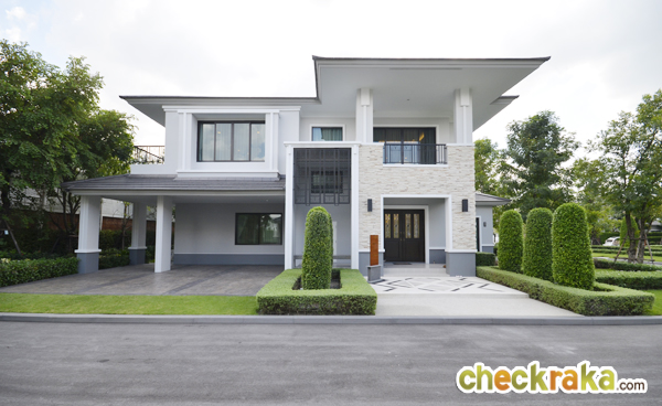 - แบบบ้านและวัสดุ - ในส่วนของแบบบ้านที่มี 2 แบบนั้นค่อนข้างเหมาะสมทีเดียว บ้านทุกแบบสามารถรองรับสมาชิกในครอบครัวได้หลายคน จุดเด่นของบ้านอยู่ที่ดีไซน์บ้านดูหรูหราในสไตล์ Modern Art Deco บ้านขนาดใหญ่สุดมีพื้นที่ถึง 414 ตร.ม. ซึ่งตอบโจทย์คนที่มีครอบครัวใหญ่ได้เป็นอย่างดี ตัวบ้านขนาดใหญ่ แต่สร้างบนเนื้อที่ดินที่ใหญ่กว่า ได้พื้นที่ใช้สอยภายในบ้านเต็มที่ พื้นที่ด้านนอกก็ยังปูหญ้าและจัดสวนให้เต็ม วัสดุภายในบ้านโดยส่วนใหญ่ใช้วัสดุในเกรดสำหรับบ้านหรู โดยรวมถือว่าวัสดุต่างๆ เหมาะกับแบรนด์บ้านหรูหราระดับนี้ค่ะ ไม่ว่าจะเป็น ประตูไม้สัก พร้อมกระจกสเตนกลาส ครัว Built-in พื้นบันไดไม้มะค่า ซึ่งเป็นไม้จริงราคาสูง พื้นชั้นบนปาร์เก้ไม้มะค่า วัสดุกรอบประตูหน้าต่างเป็นอลูมิเนียม anodize สีดำ และสุขภัณฑ์ของ Cotto เป็นต้น