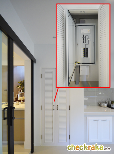 ห้องนี้บ้านที่ส่งมอบลูกค้าจริงๆ จะเป็นห้องเปล่าโล่งๆ แต่บ้านตัวอย่างจะกั้นให้เห็นว่า