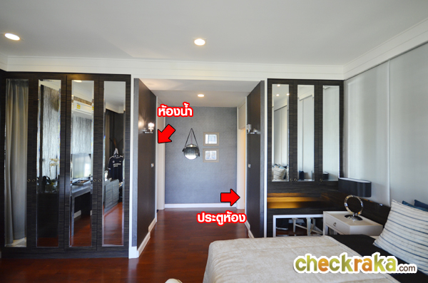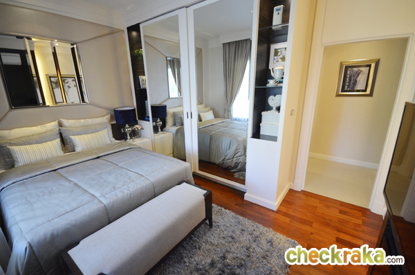 ขนาดห้องสามารถแบ่งเป็นส่วน Walk in Closet ได้ และปลายเตียงยัง Built-in ตู้วางทีวีเพิ่มขึ้นมาอีกด้วย