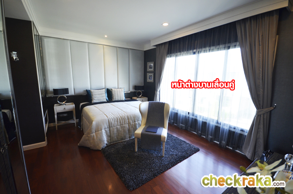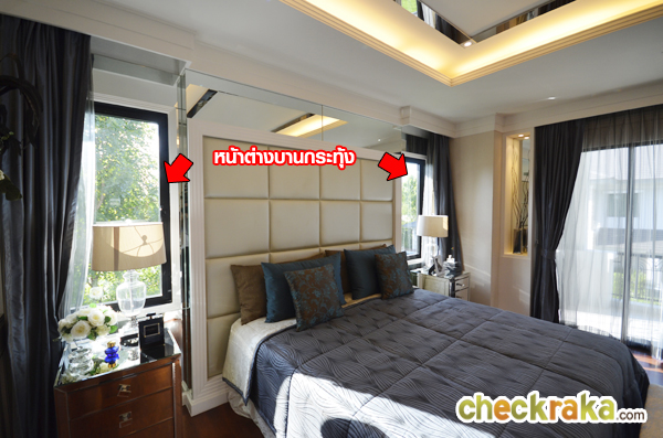 ยาวเกือบจะเท่าผนังห้องด้านหน้า ทำให้ห้องดูสว่าง เมื่อวางเตียงขนาด 6 ฟุตแล้วยังเหลือพื้นที่ข้างเตียง