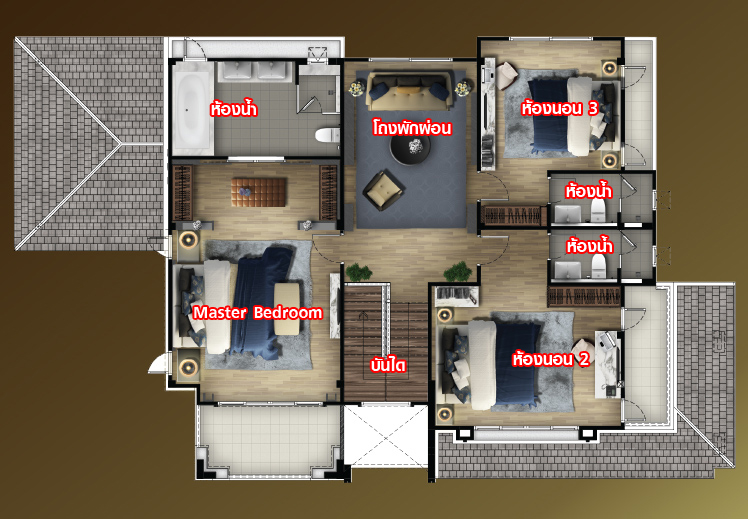 ฟังก์ชันบ้านของห้องต่างๆ เมื่อขึ้นมาที่ชั้น 2
