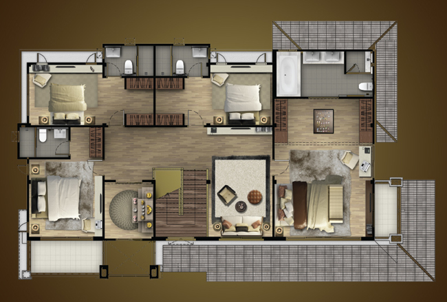 - ขนาดพื้นที่ใช้สอยอยู่ที่ 346 - 414 ตร.ม.