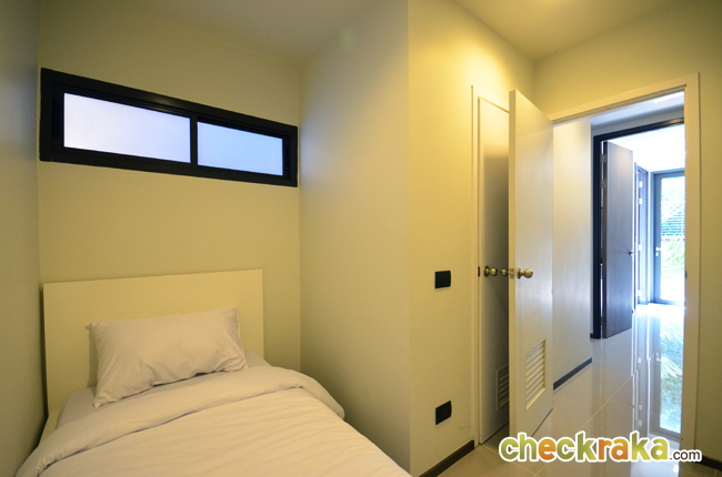 มาดูห้องนอนที่ 2 ของบ้าน ห้องนี้จะอยู่บริเวณด้านหลังบ้าน หันไปทางทิศใต้ ไม่มีระเบียงแต่มีหน้าต่างมองวิวสระน้ำได้