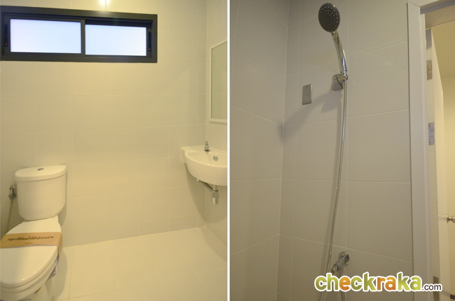ภายในห้องน้ำก็มีอุปกรณ์ให้ครบ ทั้งสุขภัณฑ์ อ่างล้างหน้า และส่วน Shower