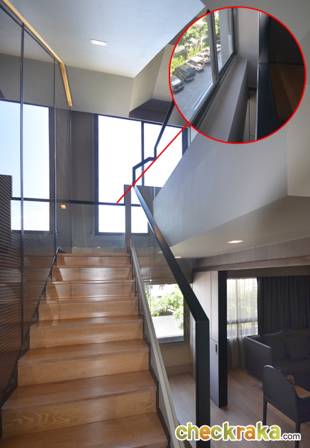 ขึ้นไปดูชั้นต่อไปกันเลย บริเวณชานพักมีซอกหน้าต่างยาวไปถึงด้านล่างด้วยค่ะ