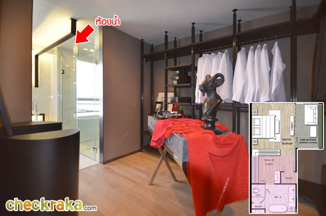 Master Bedroom ชั้นนี้กว้างใหญ่ โอ่อ่ามากทีเดียว โครงการกั้นส่วน Walk-in Closet ไว้ที่หน้าทางเข้า