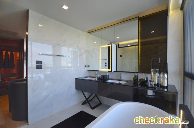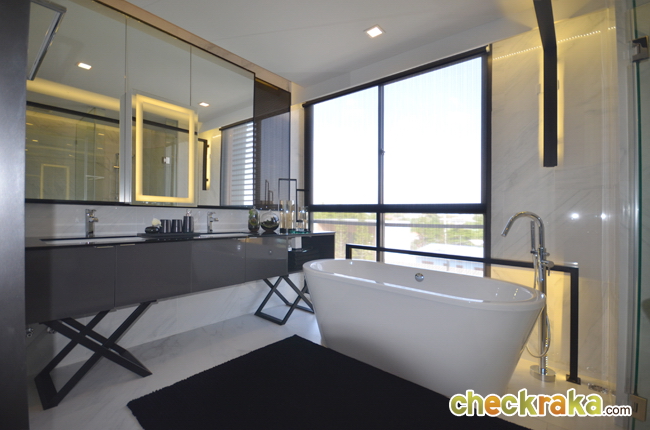 ห้องน้ำใหญ่สมกับเป็น Master Bedroom ค่ะ มีอ่างอาบน้ำให้ และอ่างล้างหน้าก็มีให้ 2 อ่าง