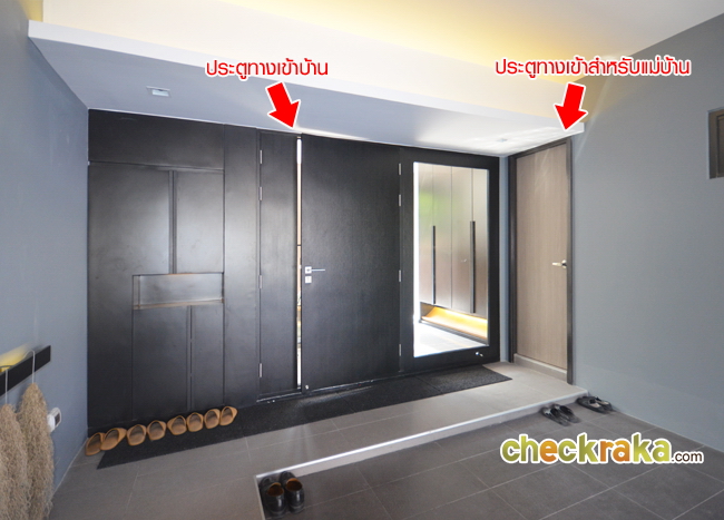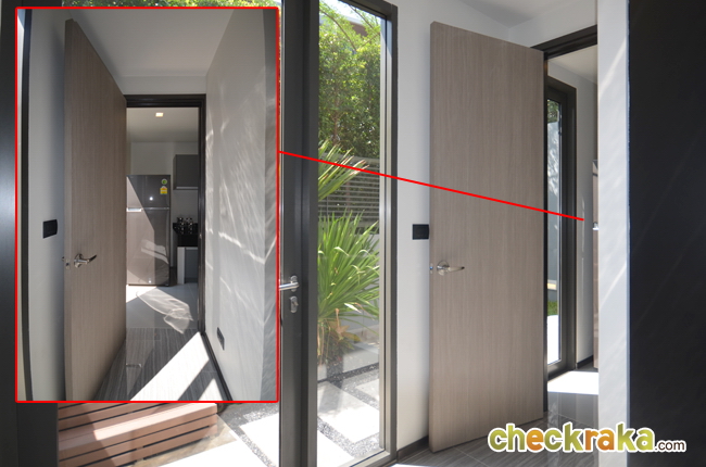 ส่วนประตูทางขวามือเป็นประตูทางเข้าของแม่บ้านค่ะ เข้าไปจะเป็นในส่วนของห้องครัว