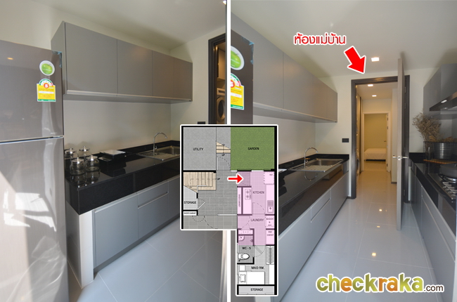 ลองเข้าไปดูในส่วนของห้องครัวกันค่ะ ส่วนนี้จะทำแยกไว้สำหรับแม่บ้าน