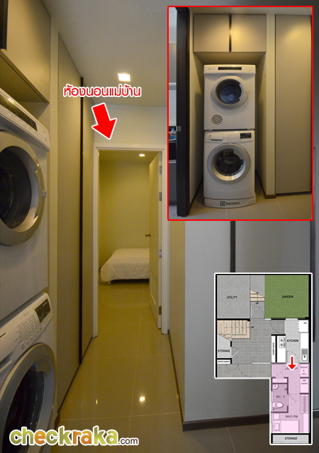 ถัดไปเป็นห้อง Laundry มีพื้นที่วางเครื่องซักผ้า และเก็บของทั่วไป ห้องนี้จะเป็นห้องที่ประตูแม่บ้านเปิดเข้ามาเจอพอดีค่ะ