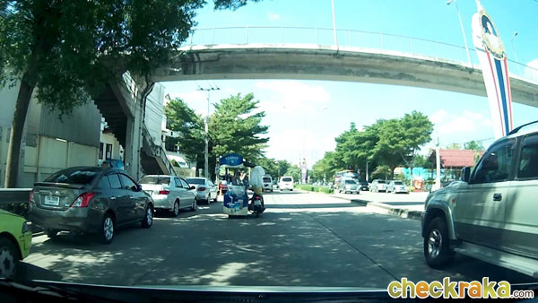 พอถึงสามแยกตัดถนนวงแหวนอุตสาหกรรม (สะพานภูมิพล) ให้ตรงไป