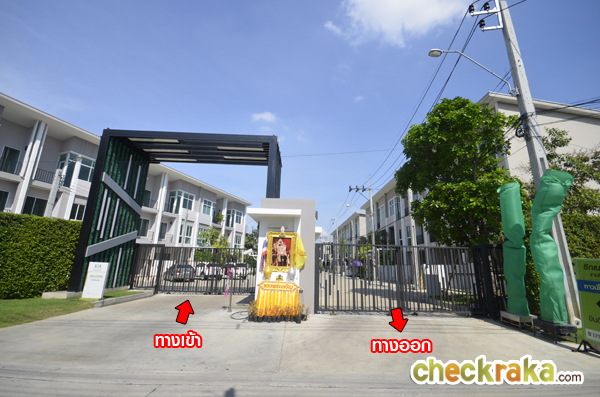 ด้านหน้าทางเข้า-ออกโครงการ ส่วนทางเข้าจะมีซุ้มประตู