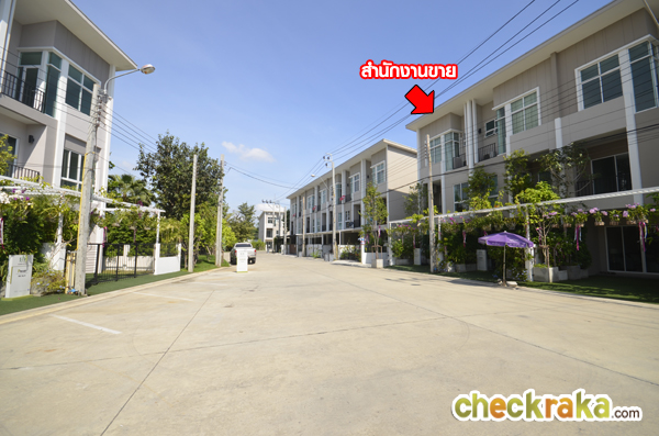- ตัวโครงการโดยรวมและส่วนกลาง - ทางเข้าด้านหน้าโครงการเป็นซุ้มประตูขนาดไม่ใหญ่มาก ลักษณะโครงการเป็นแนวลึกเข้าไปด้านใน ด้านหน้าเป็นบ้านตัวอย่าง และ Sales Office เข้าไปอีกนิดหน่อยจะเป็นพื้นที่สวนสีเขียว และเป็นบริเวณคลับเฮ้าส์ ประกอบไปด้วย สระว่ายน้ำ ระบบเกลือขนาดใหญ่ แยกสระผู้ใหญ่ และสระเด็ก ขนาด 7 x 24 เมตร สระผู้ใหญ่ลึก 1.50 เมตร สระเด็กลึก 60 เซนติเมตร และฟิตเนส ถัดไปก็จะเป็นพื้นที่ที่อยู่อาศัยลึกเข้าไปจนสุดโครงการ โครงการมีบ้านทั้งหมด 152 ยูนิต ปัญหาด้านเสียงและฝุ่นควันมีน้อยเพราะไม่ได้อยู่ติดถนนใหญ่ การเข้า-ออกโครงการมีทางเดียวทำให้โครงการมีความเป็นส่วนตัว บรรยากาศในโครงการดูสบายๆ ไม่อึดอัด ถนนภายในโครงการกว้างขวางตามมาตรฐาน และมีระบบรักษาความปลอดภัยตลอด 24 ชั่วโมง