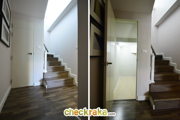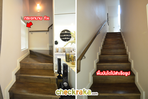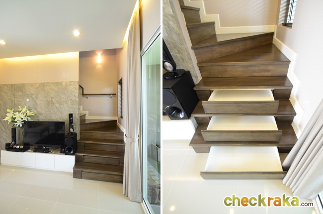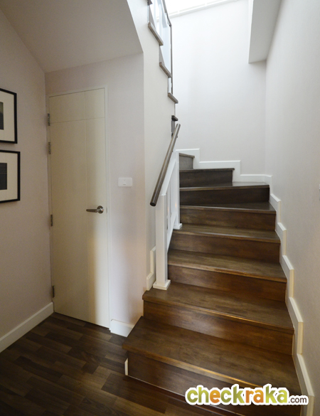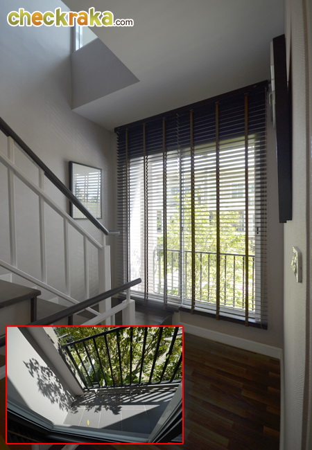 ช่วยให้แสงธรรมชาติเข้าตรงบันไดได้พอสมควร พื้นบันไดไม้สำเร็จรูป มีราวจับติดกับผนัง 1 ด้าน