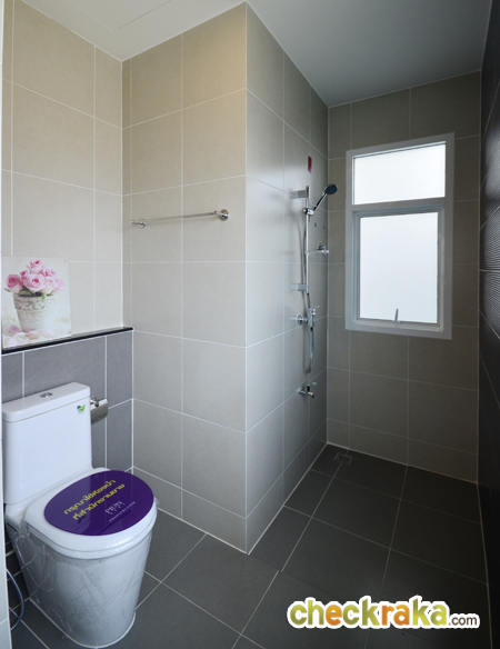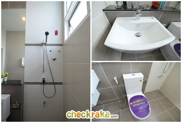 ห้องน้ำของชั้นนี้ให้สุขภัณฑ์ Cotto มาครบ มีทั้งโถสุขภัณฑ์ อ่างล้างมือ กระจก และฝักบัว นอกจากนี้ยังแยกส่วนเปียก/แห้ง
