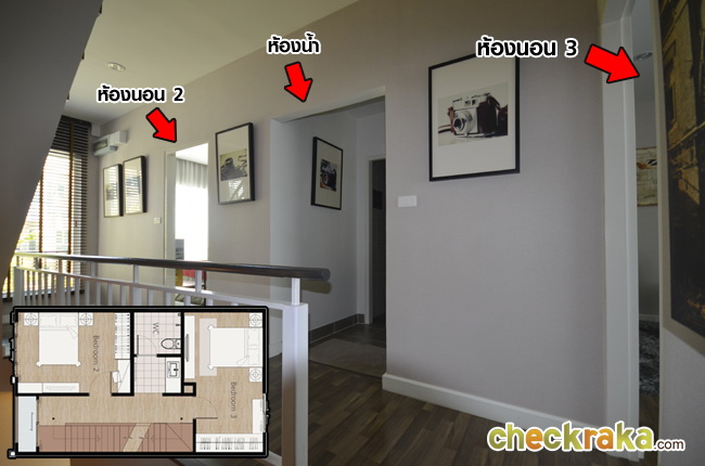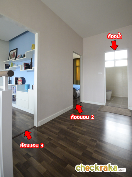 เมื่อขึ้นมาที่ชั้น 3 จะพบกับฟังก์ชั่นห้องเรียงตามนี้เลยค่ะ มีห้องนอน 3 ติดกันคือห้องนอน 2