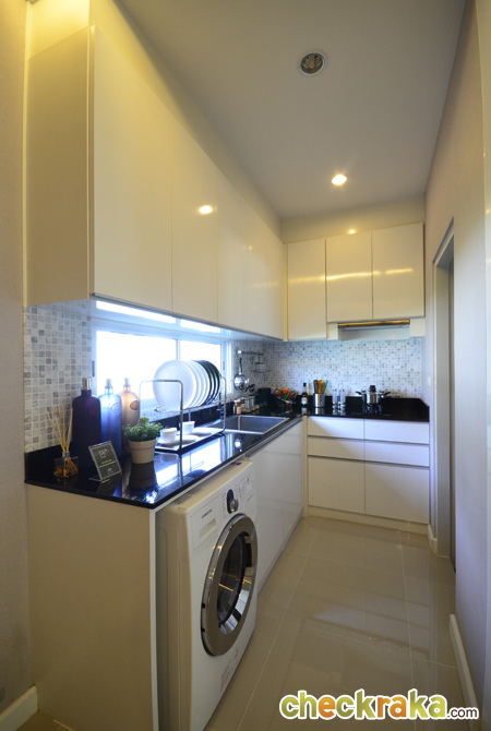 พื้นที่ห้องครัวสามารถวางเคาน์เตอร์รูปตัว L ได้เต็มพื้นที่ มีหน้าต่างบานเล็กให้