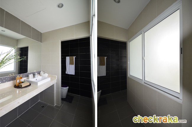 ในส่วนของพื้นอาบน้ำลดระดับลงจากพื้นห้องน้ำปกติ และยังมีบานกระทุ้งระบายอากาศให้ถึง 2 บาน