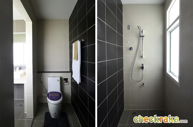 ด้านในแยกส่วนโถสุขภัณฑ์ และ Shower ไว้คนละด้าน ด้าน Shower มีหน้าต่างรับแสงให้