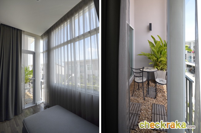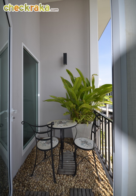 ระเบียงห้องนี้มีความกว้างมากเลยทีเดียว จะตั้งโต๊ะ เก้าอี้สำหรับชมวิว หรือวางกระถางปลูกต้นไม้ก็ได้