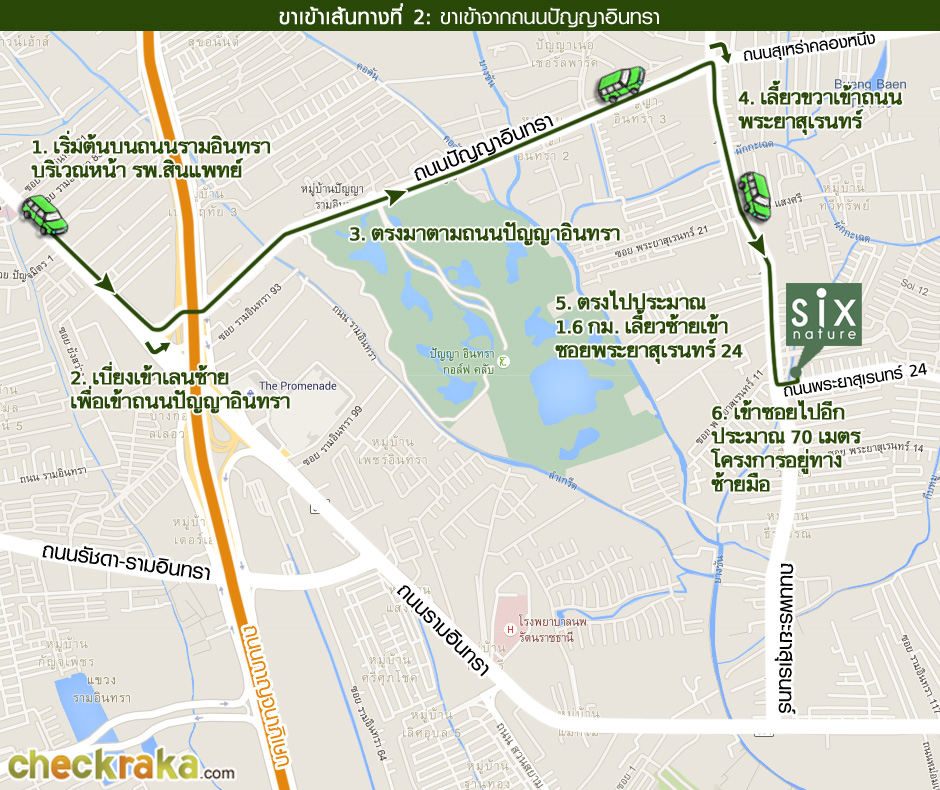 ขาเข้าโครงการ เส้นทางที่ 2 มาจากถนนพระราม 2 เข้าโครงการโดยใช้ถนนปัญญาอินทรา