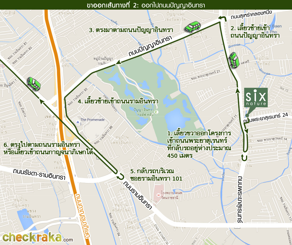 ขาออกโครงการ เส้นทางที่ 1 ออกโครงการโดยใช้ถนนรามอินทรา