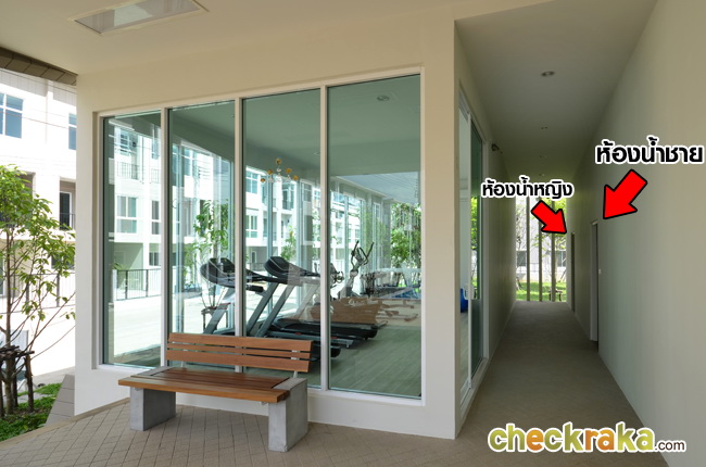 ด้านซ้ายมือจะเป็นฟิตเนส มีห้องน้ำอยู่ด้านหลัง แยกชาย-หญิง