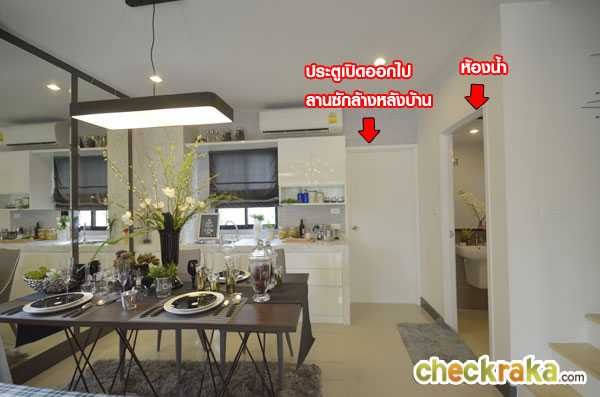 เปิดออกไปลานซักล้างหลังบ้านได้ ห้องน้ำชั้นล่างก็อยู่ตรงข้ามโต๊ะรับประทานอาหารนี่เองค่ะ