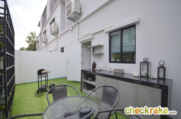สำหรับลานซักล้างหลังบ้าน บ้านตัวอย่างตกแต่งเป็นพื้นที่พักผ่อน ทำอาหารกล้างแจ้ง