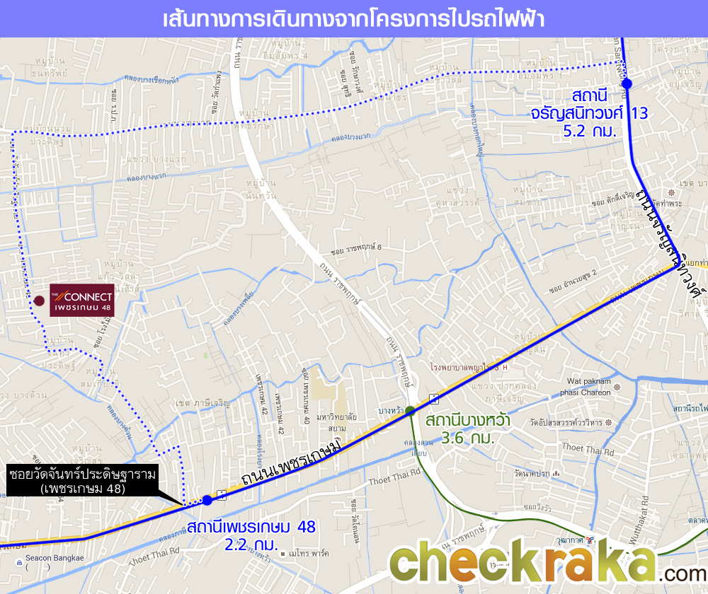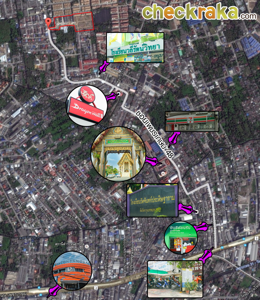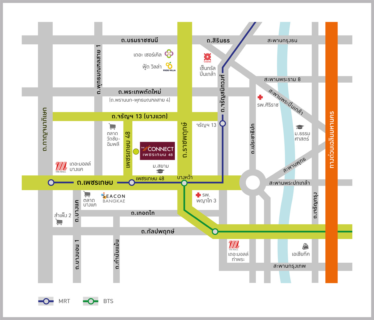 - ที่ตั้งโครงการ ซอยเพชรเกษม 48 ถนนเพชรเกษม แขวงบางด้วน เขตภาษีเจริญ กรุงเทพมหานคร 10140