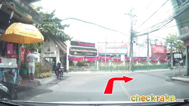 ตรงเข้าซอยมาประมาณ 400 เมตร จะเจอทางแยกให้เลี้ยวซ้าย