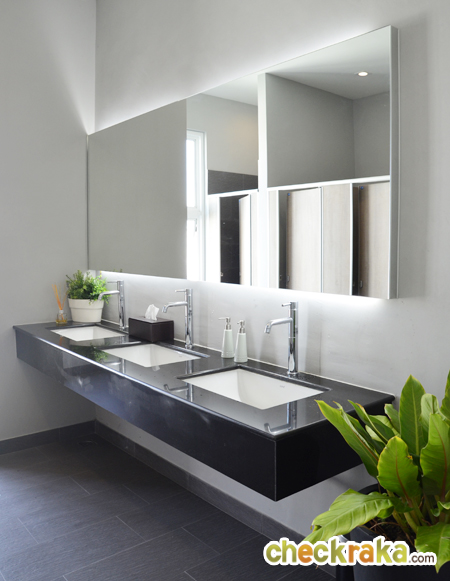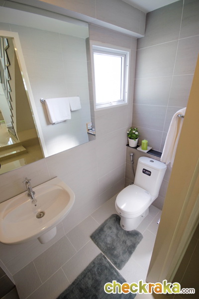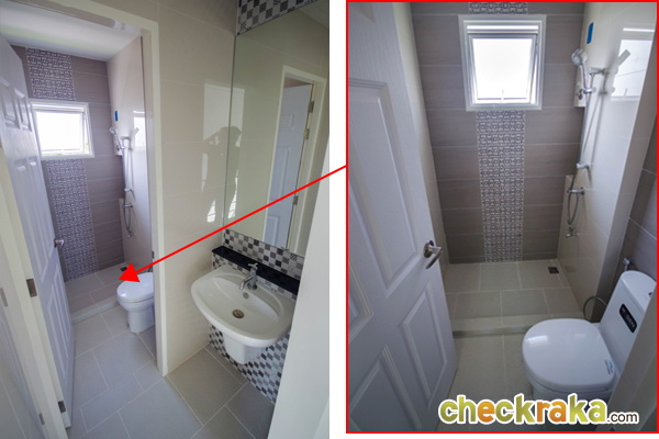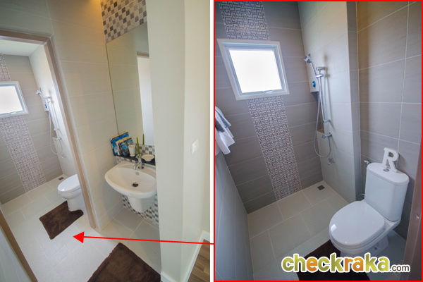 ห้องน้ำใช้สุขภัณฑ์ของ Mogen เช่นกัน แบ่งส่วนแห้งส่วนเปียก และกั้นห้องแยกส่วนที่เป็นอ่างล้างหน้าไว้ด้านนอก