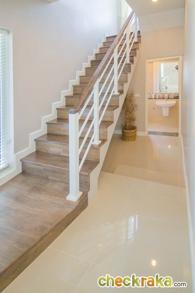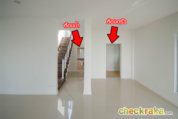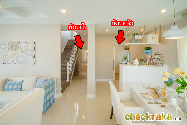 ด้านข้างตัวบ้านจะเป็น Pantry และห้องครัวด้านใน ส่วนห้องน้ำจะอยู่ใต้บันไดพอดี